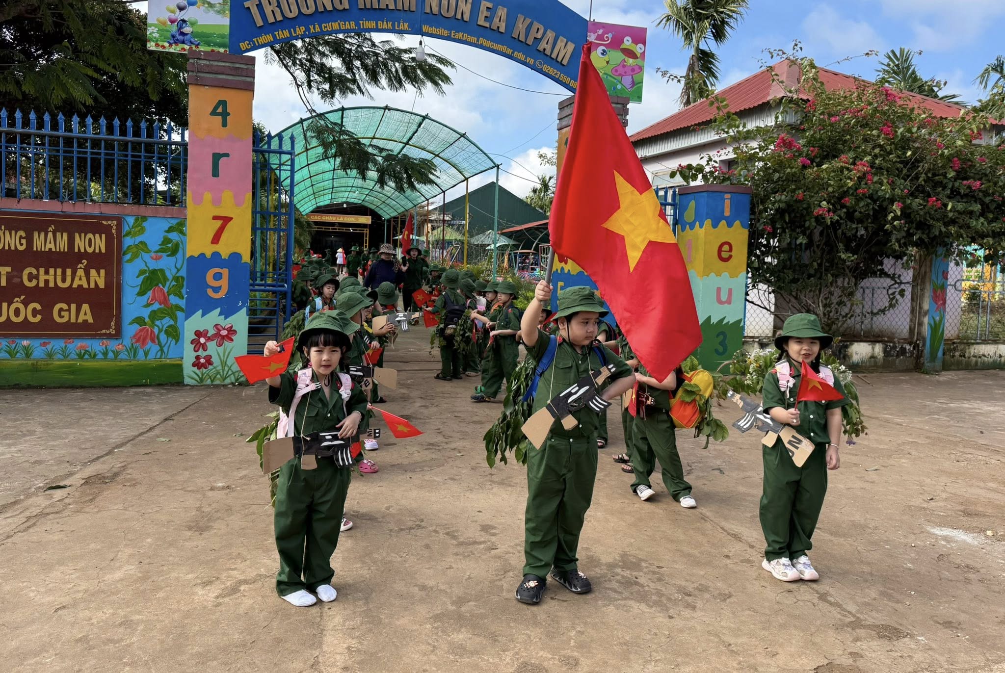 Hòa chung không khí thi đua sôi nổi chào mừng Ngày thành lập Quân đội Nhân dân Việt Nam 22/12, Trường Mầm non Ea Kpam đã tổ chức hoạt động trải nghiệm ý nghĩa dành cho trẻ với chủ đề “Bé làm chiến sĩ”.