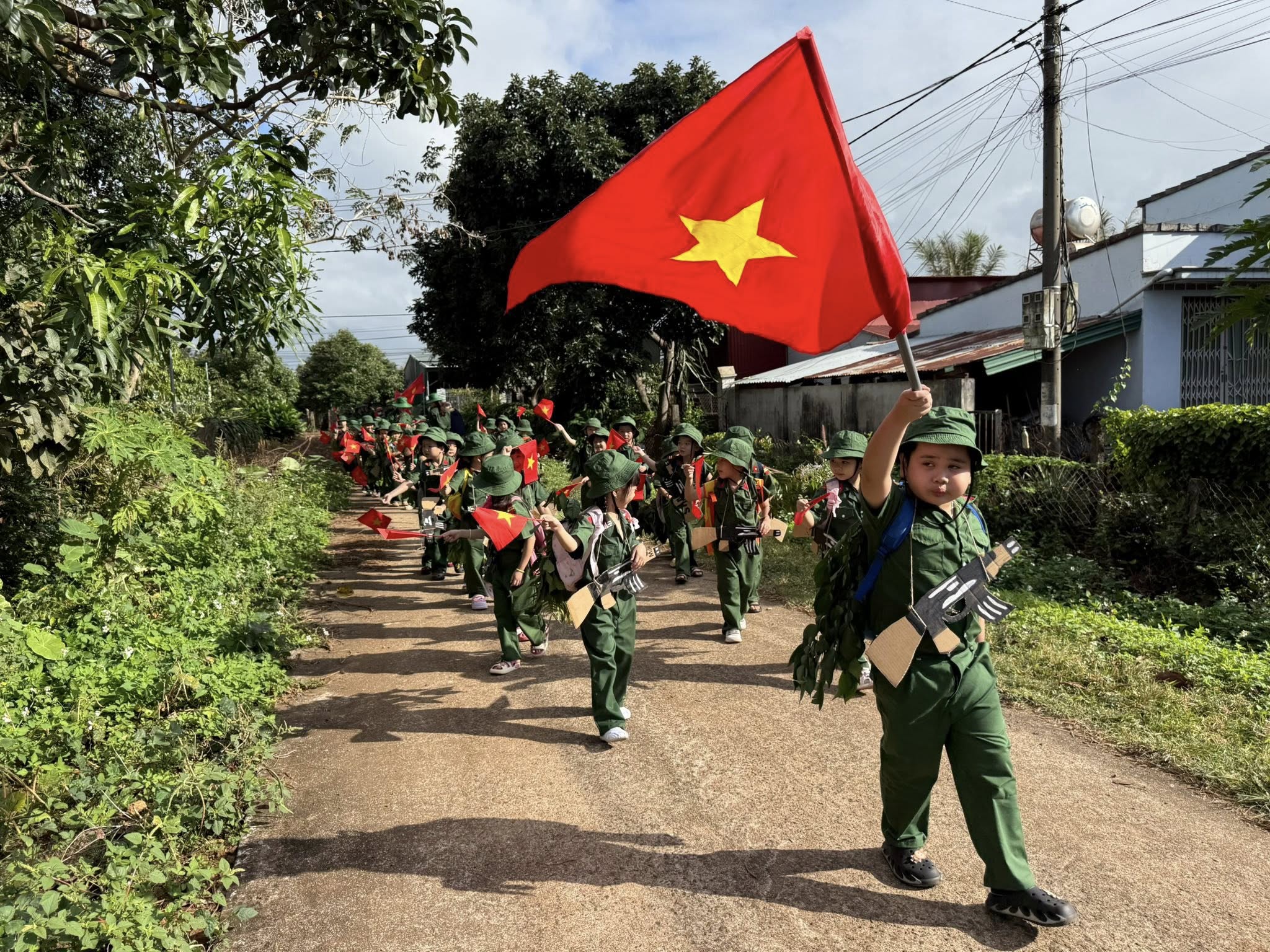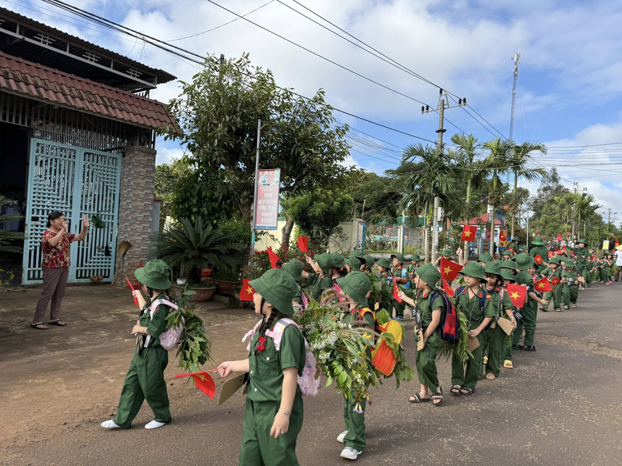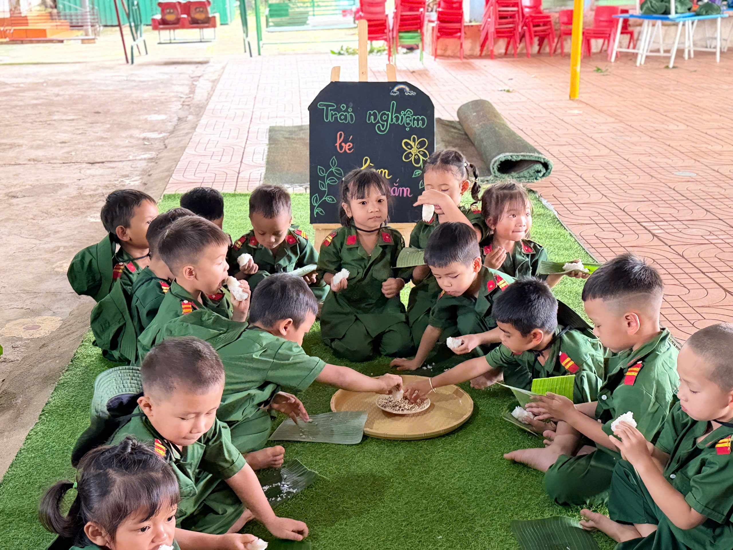Trong chương trình, đầu tiên là phần diễu hành của các chiến sĩ nhí, tiếp đến là đồng diễn tập thể, thể hiện tinh thần đoàn kết, kỷ luật và sự mạnh dạn, tự tin. Hoạt động trải nghiệm một ngày làm Chú bộ đội mang đến cho trẻ sự hào hứng, thích thú. Đặc biệt, các bé được trải nghiệm ăn cơm nắm – hình ảnh gần gũi gắn liền với cuộc sống giản dị của người lính.