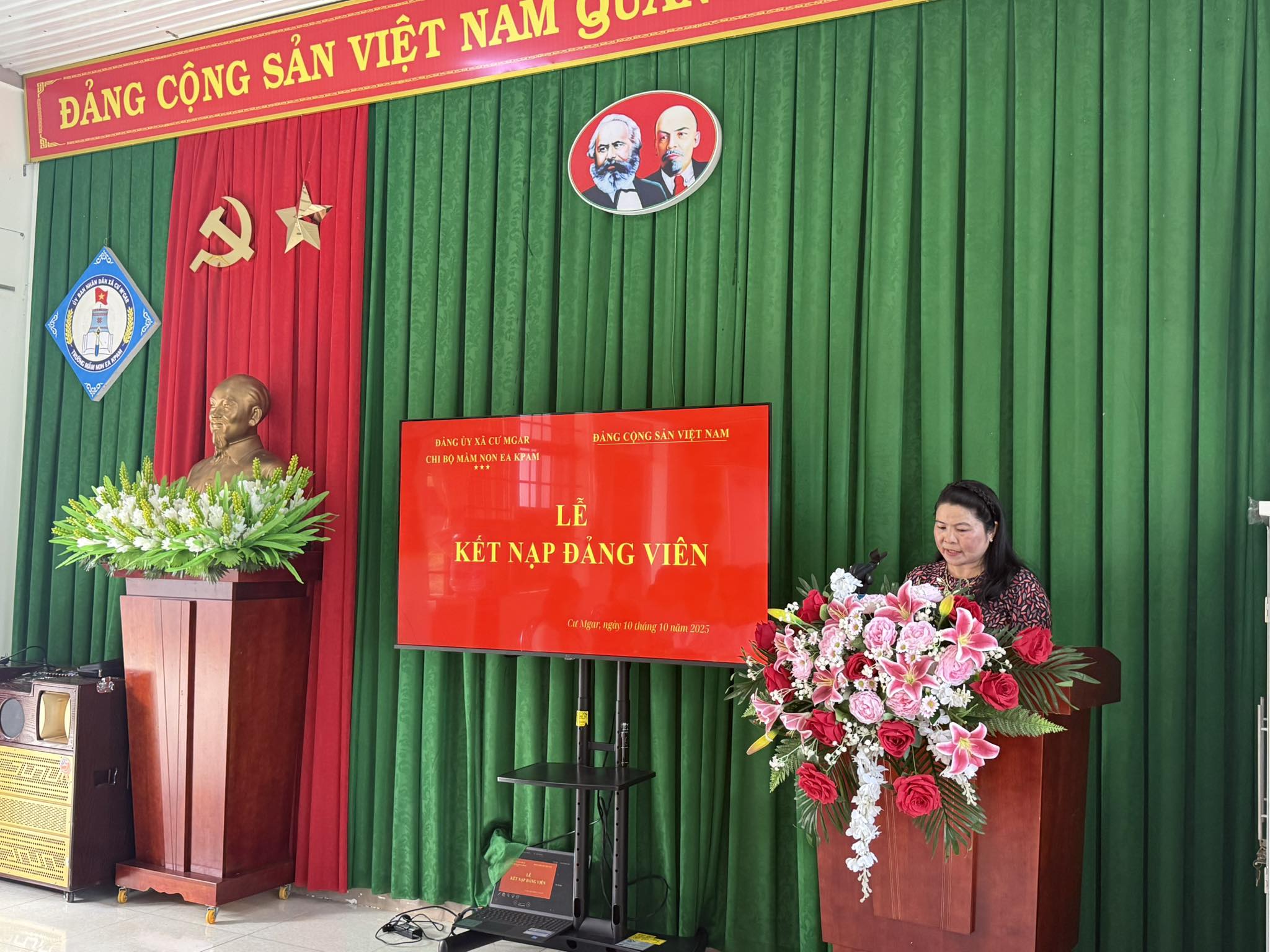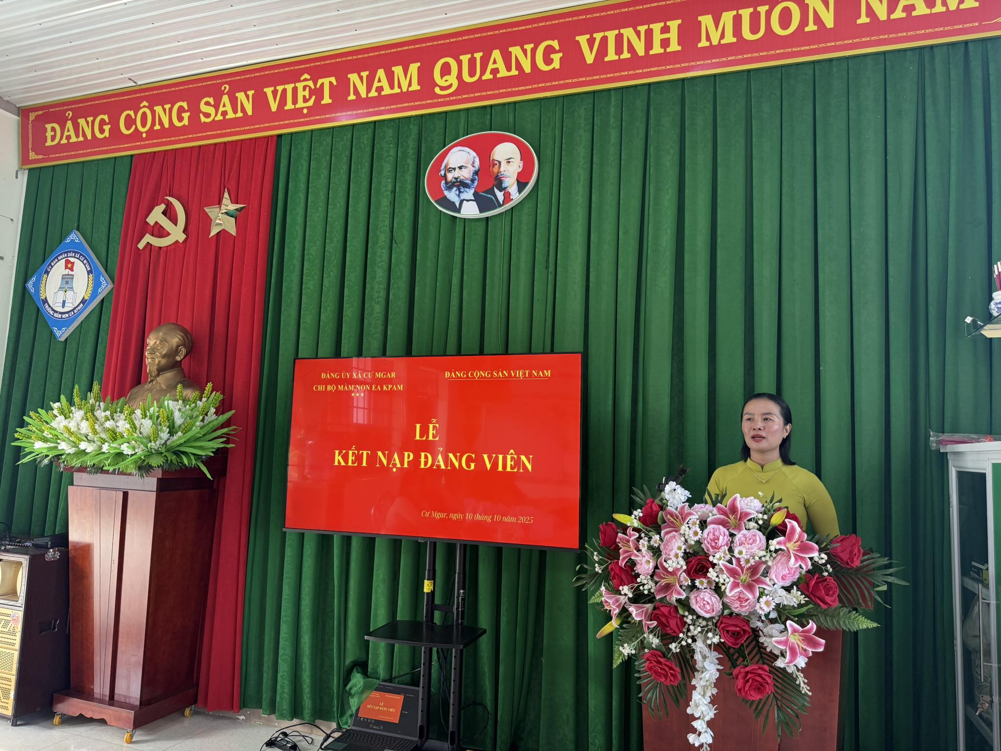 Chiều nay, ngày 10/10/2025. Chi bộ Mầm non Ea Kpam đã long trọng tổ chức Lễ kết nạp Đảng viên cho Đồng chí Nguyễn Thu Hiền.
